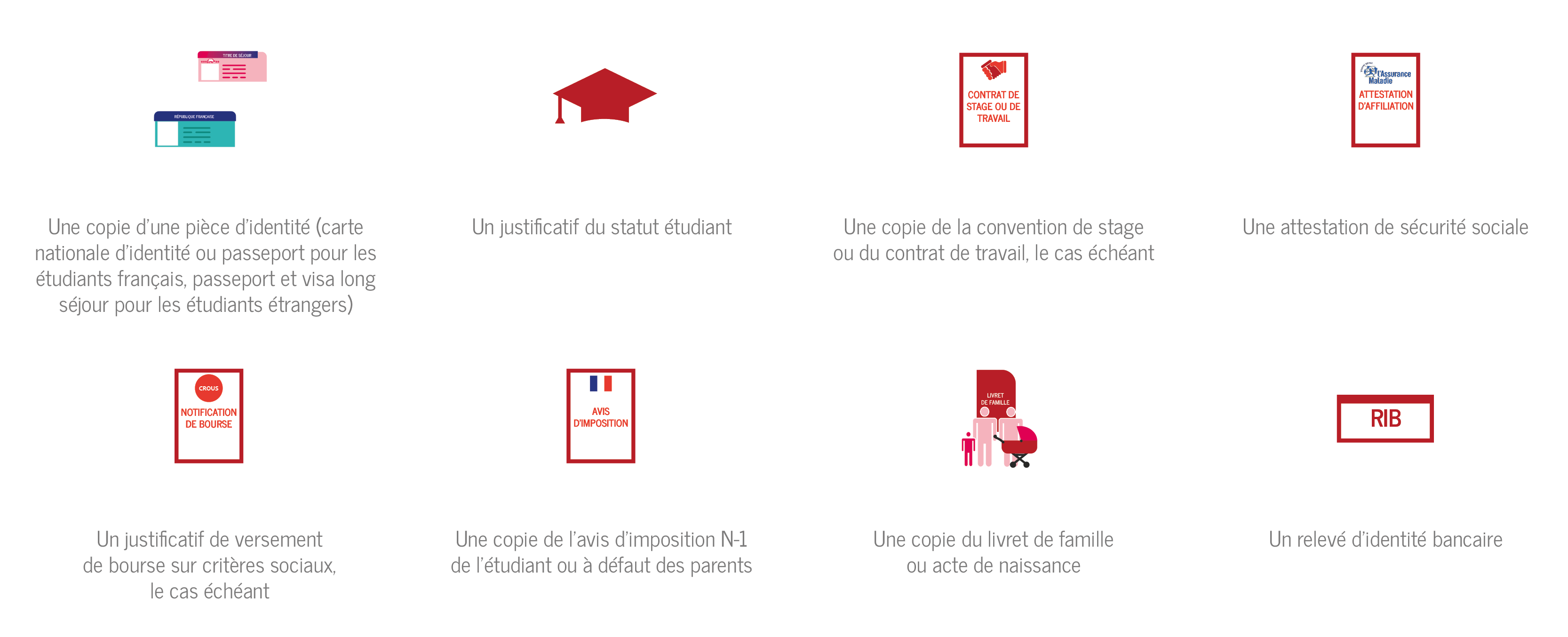 Les pièces justificatives pour les étudiants