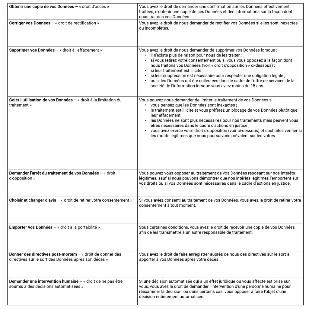 Vous pouvez obtenir plus d’informations sur l’étendue de ces droits sur le site de la CNIL en cliquant ici.